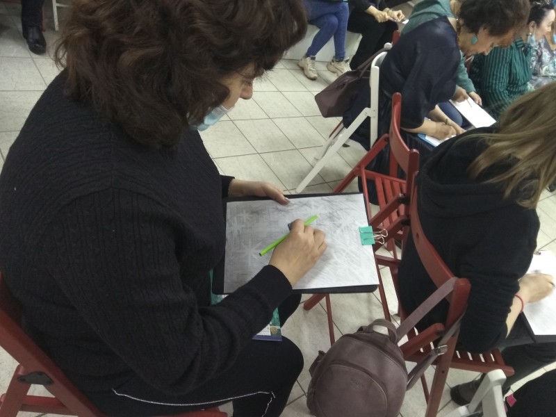 Время летит незаметно… Всех посетителей вооружили космическими планшетами, карандашами и даже ватными дисками. Эта экипировка потребовалась для следующего мероприятия – мастер-класса по быстрым наброскам «Рисуем космос!». И стар, и млад устремили взгляды на покорителя холста и мольберта Александру Аджигитову – художественного руководителя студии «Этюд». Зашуршали карандаши, дружно засопели дети, взрослые увлеклись необычными приемами растушевки с помощью ваты… Каждый почувствовал себя, если не профессиональным художником, то творцом Вселенной точно!