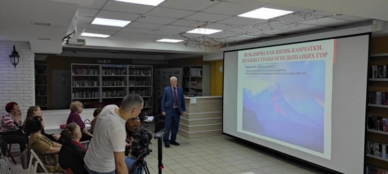 Далее эстафету подхватил ученый-вулканолог Виктор Иванов. Как настоящий профессионал, в сопровождении фото- и видеоматериалов, он «препарировал» вулканы, погрузив участников в самое пекло. У зрителей появилось множество вопросов, на которые старший научный сотрудник Института вулканологии и сейсмологии ДВО РАН отвечал исчерпывающе и чрезвычайно интересно.