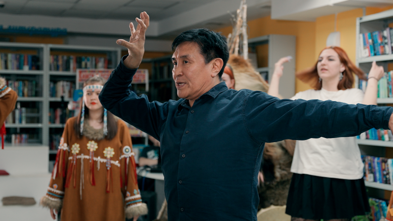 В Центральной библиотеке демонстрировались фильмы о коренных жителях края, прошла краеведческая викторина, а гвоздем программы стал танцевальный флешмоб "Давно так было в табуне".