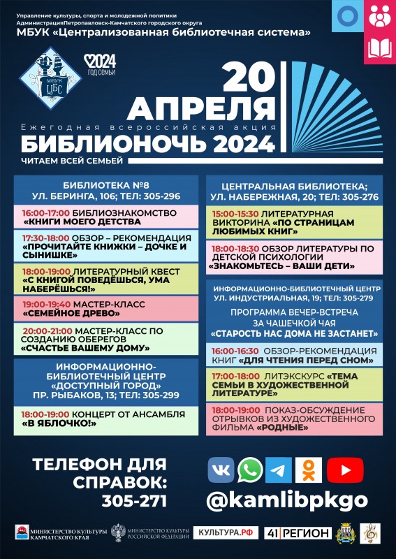 Ежегодная акция «Библионочь» в 2024 году пройдет в России уже в 13-й раз. В Год семьи и тема соответствующая — «Читаем всей семьей».