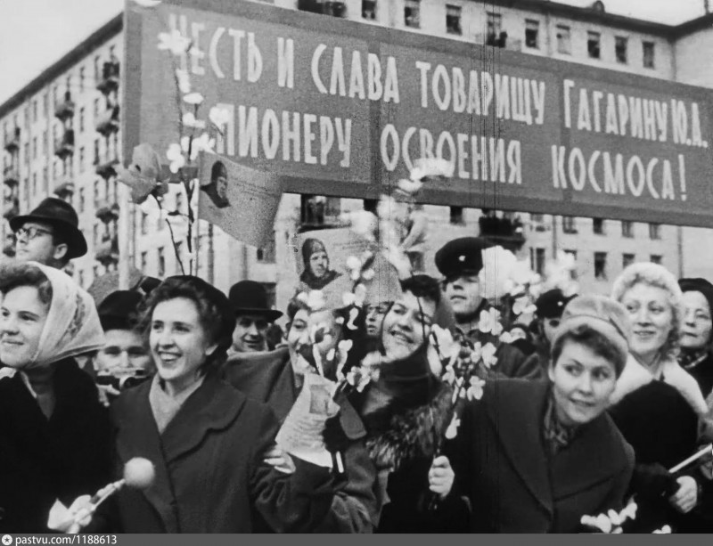 В СССР царило истинное ликование. Люди выходили на улицы с транспарантами, плакатами и портретами Юрия Гагарина.