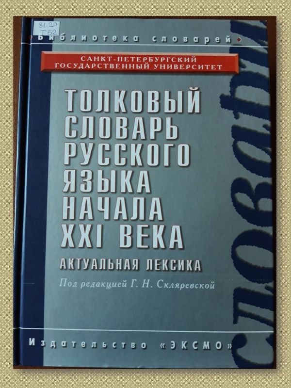Толковый словарь русского языка начала ХХI века. Актуальная лексика. – М.: Эксмо, 2007. – (Библиотека словарей).