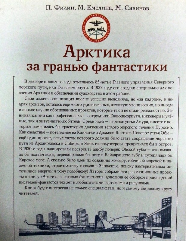 Филин, П. Арктика за гранью фантастики. Будущее Севера глазами советских инженеров, изобретателей и писателей / П. Филин, М. Емелина, М. Савинов. - М. : Паулсен : Арктический музейно-выставочный центр, 2018. - 247, [1] с. : ил., карт., факсимиле.