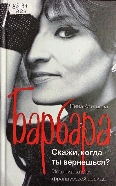 Агишева, Н.Д. Барбара. Скажи когда ты вернешься? : история жизни французской певицы : [16+] / Н.Д. Агишева ; [худож. А. Бондаренко]. - М. : АСТ : Редакция Елены Шубиной, 2017. - 253, [3]с., [19] л. фото.