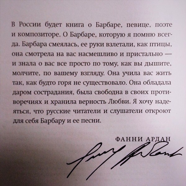 Барбара - кто она? Что сегодня о ней знают в России? Дама в черном, поэт, композитор и певица - во Франции ее боготворят по сей день. Это песня Барбары звучала на траурной церемонии после парижских терактов в ноябре 2015-го: в моменты испытаний люди обращаются к тому, что является их душевным кодом. Это с ней с концерта на концерт колесило по Европе целое поколение французских интеллектуалов. Ее фотографию всегда носил с собой Морис Бежар. Услышав первый раз ее альбом, Михаил Барышников начал учить французский. Ее знаменитой песней, посвященной поклонникам, "Моя история любви - это вы" навсегда прощался с публикой Ив Сен-Лоран. Ее обожал и снимал в кино Жак Брель, о ней написал воспоминания Жерар Депардье, сегодня ее песни в репертуаре Карлы Бруни и многих других исполнителей. Книга известного театрального критика Нины Агишевой - это попытка разгадать загадку Барбары и воскресить время высокого романтизма в искусстве, пробудить в русском читателе и слушателе интерес к ее песням, которые нашли свое место и в новом веке.