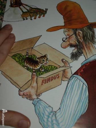 Петсон был самым обычным одиноким стариком, пока в один прекрасный день соседка не принесла ему большую коробку, в которой сидел крошечный котёнок. Жизнь Петсона изменилась, теперь ему скучать не приходится. Эта книга о том, почему Финдуса зовут Финдусом, откуда у него такие смешные полосатые штаны и как ему удалось спастись от страшного чудовища.