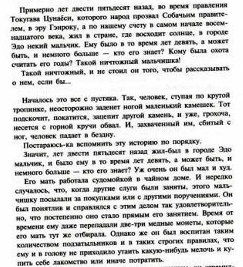 Действие повести происходит в начале 18 века в стране восходящего солнца. Бывает «человек, ступая по крутой тропинке, неосторожно заденет ногой маленький камешек. Тот подскочит, покатится, зацепит другой камень, и, уже грохоча, несётся с горной кручи обвал». Так маленький сын судомойки, совершая, казалось бы, незначительные поступки, раз за разом вынужден изменять свою жизнь. Попадая к новым людям и страшась поисков предыдущих знакомых, он называется новым именем. В результате, книга состоит из трёх частей, и каждая из них названа одним из этих имён.