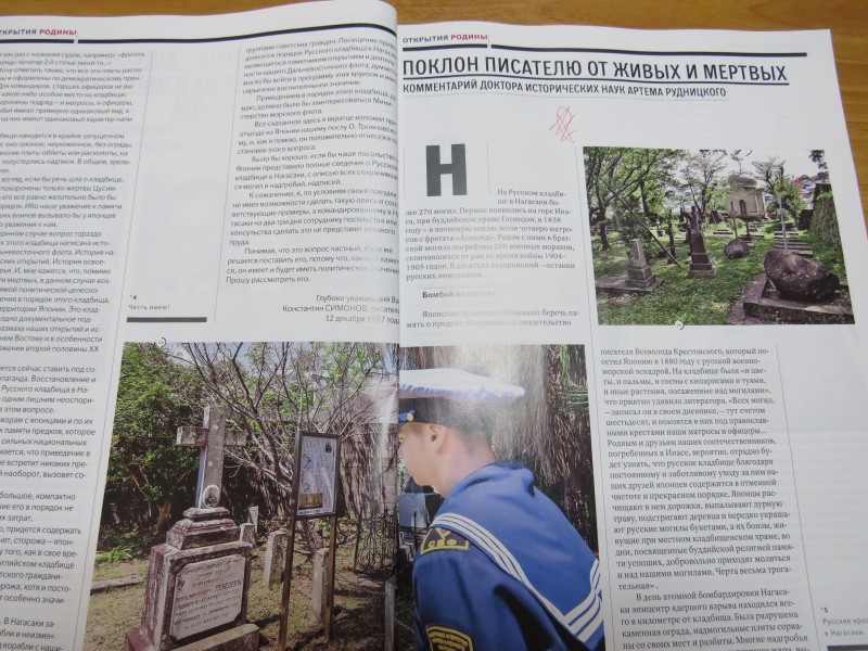 В номере так же приведено ранее не публиковавшееся обращение писателя Константина Симонова к Алексею Косыгину о русском кладбище в городе Нагасаки. Это обращение свидетельствует о неравнодушии писателя к сохранению памяти о русских воинах.