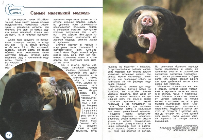 Лысогорская, Е. Самый маленький медведь / Е. Лысогорская // Пульс природы : любознательным детям и неравнодушным родителям. – 2018. - № 4. – С. 12-13. – (Самые, самые).