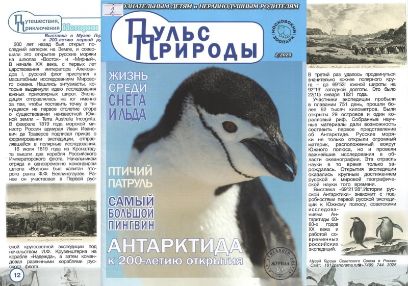 История русской Антарктики : выставка в музее Героев Советского Союза и России к 200-летию первой русской антарктической экспедиции // Пульс природы : любознательным детям и неравнодушным родителям. – 2020. – № 2. – С. 12-13. – (Путешествия, Приключения).