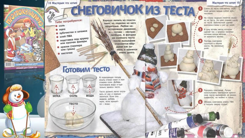 Фомичёв, Василий. Снеговичок из теста / Василий Фомичёв // Простоквашино : познавательно-развлекательный журнал для детей. – 2018. – № 1. – С. 18-19. – (Мастерим что хотим).