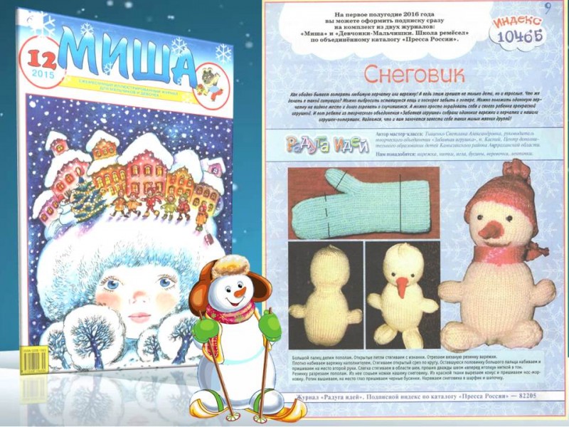 Карпуничева, Вероника. Новогодний снеговик / Вероника Карпуничева // Мурзилка : ежемесячный журнал для детей. – 2016. – № 12. – С. 11-12. – (Мурзилкины советы).