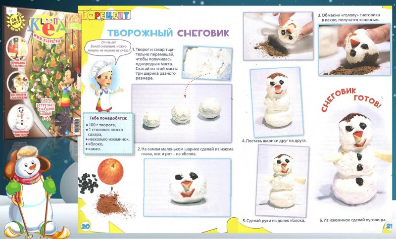 Творожный снеговик // Клёпа. – 2016. – № 12. – С. 20–21. – (К – рецепт).