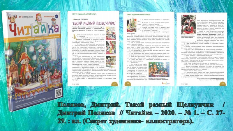 Статья "Такой разный Щелкунчик" в детском периодическом издании "Читайка и его друг Совёнок" посвящена необычной технике рисования художника-иллюстратора Валерия Сергеевича Алфеевского. Сочетание лёгких акварельных участков с почти чёрными местами, а также участками, где оставлена белая бумага – визитная карточка художника. Персонажи сказки выглядят лёгкими и воздушными.