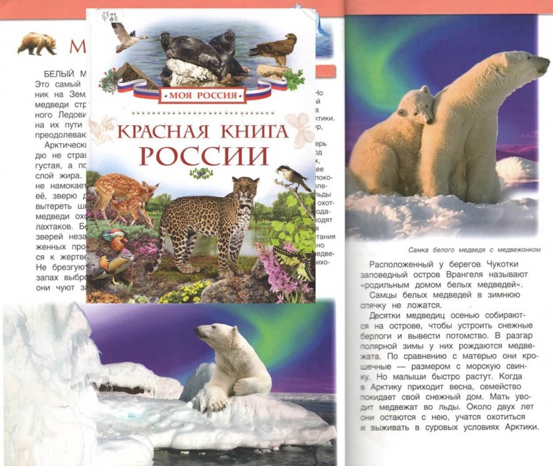 Книга рассказывает о редких и исчезающих животных, занесенных в Красную книгу России. Издание содержит красочные иллюстрации и краткое описание особенностей жизнедеятельности животных, их распространения и значения для человека. Прочитав раздел о белом медведе, вы узнаете о том, что полярный медведь самый крупный наземный хищник и что научное название белого медведя означает «медведь морской».