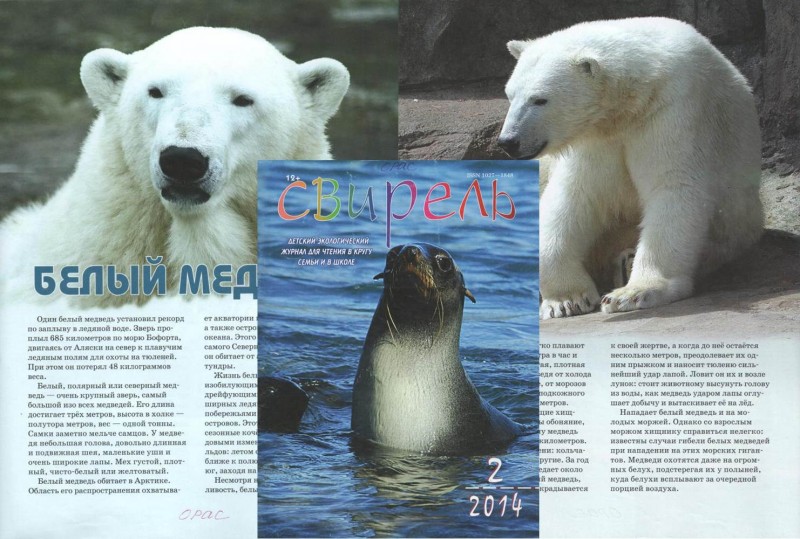 На страницах экологического журнала «Свирель» вы прочитаете познавательную информацию о белом, полярном или северном медведе. Узнаете о местах его обитания, о жизни среди белых снегов и айсбергов, о его вкусовых предпочтениях, а также удивительные истории о невероятных возможностях самого большого хищника на земле.