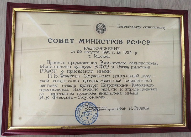 Центральная городская библиотека носит имя этого замечательного человека с 1990 года, когда общественность города отмечала 150-летие со дня рождения камчатского автора. Сотрудники библиотеки во главе с директором Верой Михайловной Войцех проделали большую работу по сбору материалов о писателе. Они наладили деловую переписку с Государственным литературным музеем, с Центральным государственным историческим архивом СССР, с архивами городов Сибири и Дальнего Востока. Большая помощь была оказана Иркутской областной библиотекой.