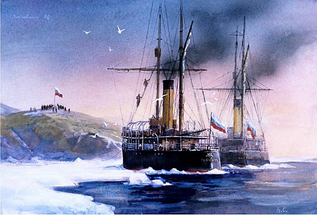 После гибели под Цусимой русской эскадры адмирала Рождественского правительство вынуждено было согласиться с тем, что для России крайне важно научиться использовать Северный морской путь через Ледовитый океан. Возникла смелая идея провести первое сквозное плавание из Тихого океана в Атлантический севернее Сибири. Именно поэтому уже в 1910 году из Владивостока и были отправлены к Берингову проливу ледокольные пароходы "Таймыр", и "Вайгач". В Петропавловске участникам экспедиции был оказан теплый прием. Но сами моряки не были покорены городом.