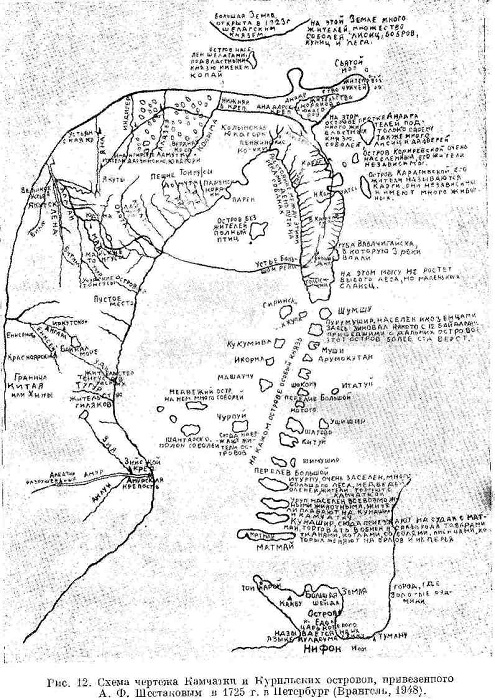 Василий Афанасьевич Шестаков посетил на «Фортуне» четыре Курильских острова, где живут «иноземцы курильской породы», и взял с них ясак за 1730 г.