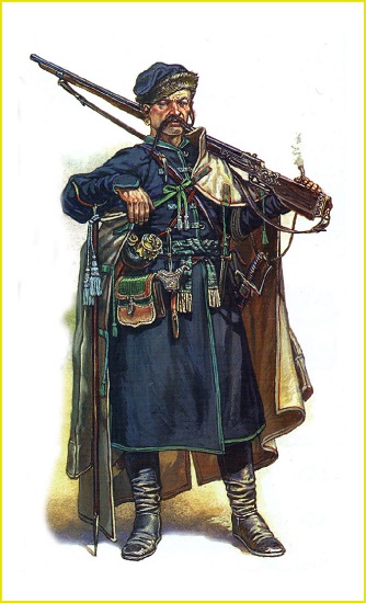 Как известно, казаки, отправляясь в походы, готовили «справу» сами и за свой счет. Они одевали не парадный, а домашний кафтан или халат, бешмет или длинную рубашку с пуговицами; часто полы их заправлялись в шаровары, которые заворачивались в полусапоги.