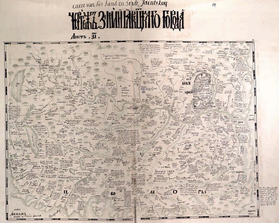 "Чертёж земли Якутцкого города" в «Чертежной книге Сибири 1701 года» сибирского картографа Семёна Ремезова
