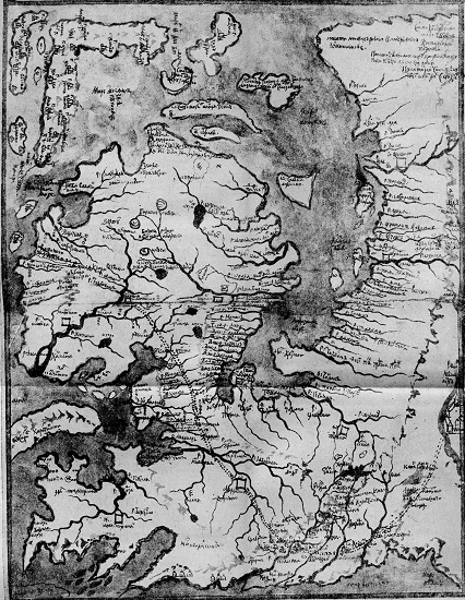 Чертёж "Вновь Камчадальския земли" Семёна Ремезова, созданная на основании чертежа И. Козыревского.