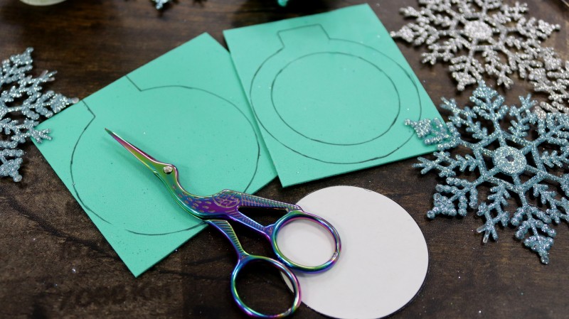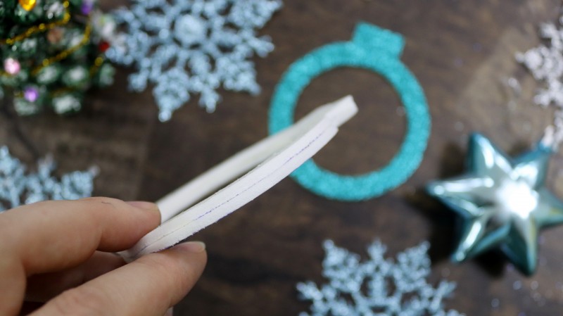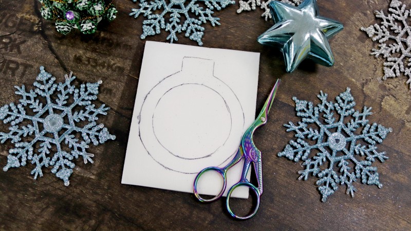 3. На блестящем фоамиране с обратной стороны обводим по шаблону нужные нам фигуры в количестве 2 штук. Внутри одной заготовки нужно обрисовать дополнительный круг посередине.