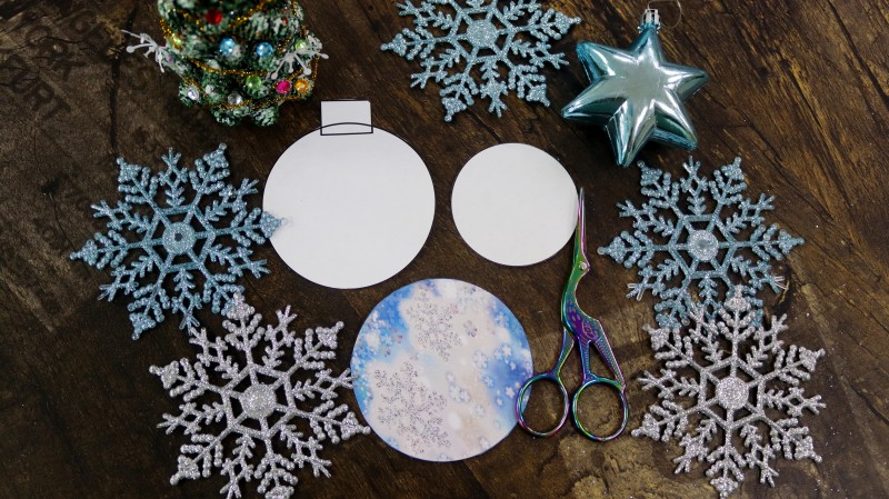 1. Вырезаем все необходимые для игрушки шаблоны: шаблон игрушки диаметром 8 см, круг диаметром 6 см, круг с фоном диаметром 8 см.