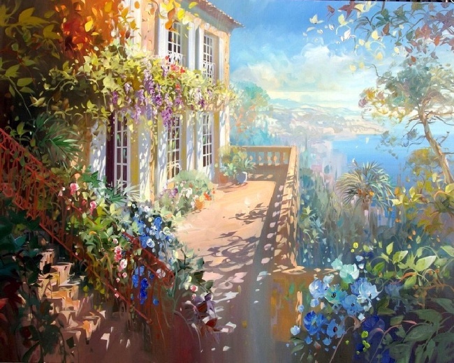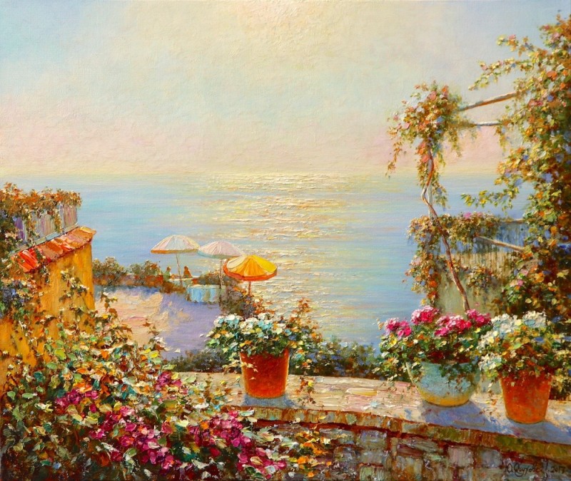 Ю. Обуховский. Амальфи. Цветы над морем