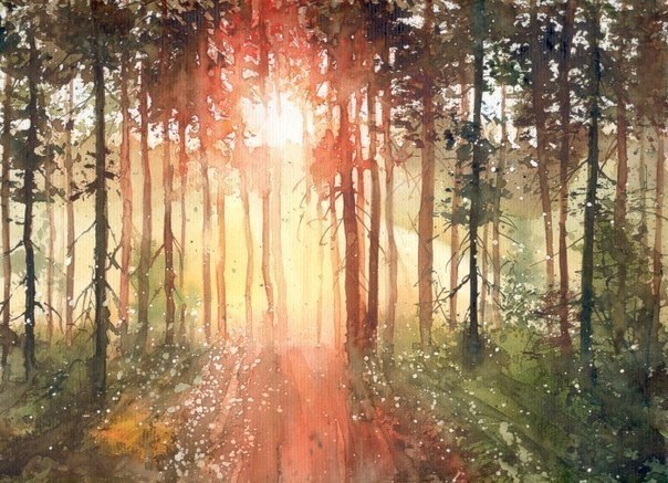Малгожата Шчечинска (Malgorzata Szczecinska) — польская художница-самоучка. Рисует акварелью. Лёгкие, как паутинка, воздушные, пронизанные светом картины. Как будто, она рисует светом. Так трогательно и нежно изображает художница природу.