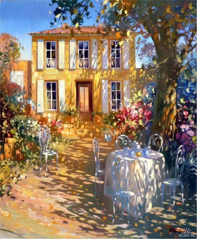 Кажется, что в баночках этого художника находится не краска, а задорный солнечный свет. Мастер будто достаёт этих «зайчиков» оттуда и рассаживает в нужном порядке на своих холстах. Каких-то он собирает в кучки, а каких-то оставляет в гордом королевском одиночестве: всё зависит от композиции. На всех картинах Лорана Парселье (Laurent Parcelier) есть движение: солнечные кружочки будто танцуют и играют друг с другом.
