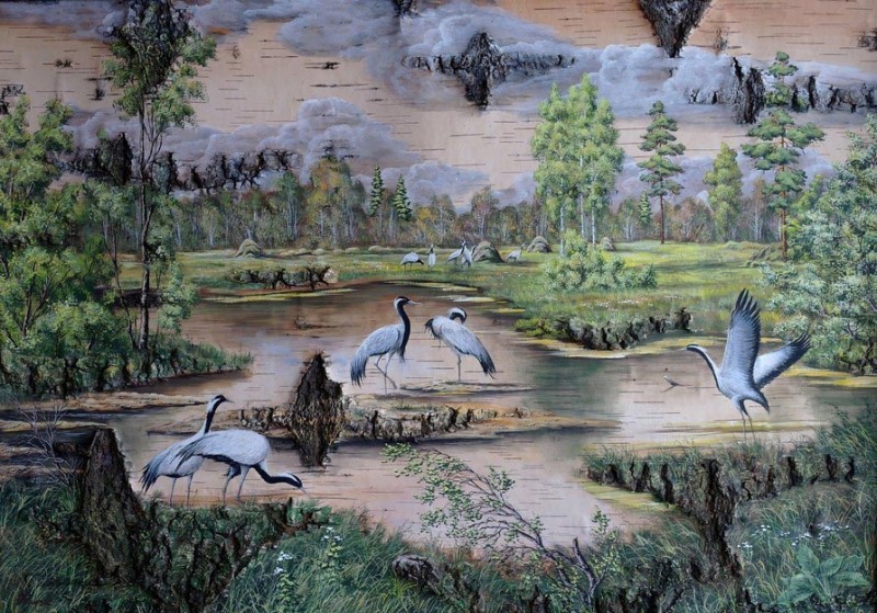 Роспись по бересте известна на Руси с XV века, однако сегодня этим занимаются единицы. Природа «расписывает» бересту по своему усмотрению, украшая причудливыми наплывами, завитками и сочетаниями штрихов. Береста – материал, который редко используется художниками, поэтому мастера живописи на бересте, безусловно, привлекают внимание. Современный российский художник Сергей Иванович Сурин, один из немногих, кто занимается темперной живописью на бересте. Темперной называют эту живопись за используемые краски.