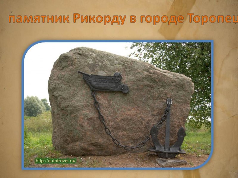 Пётр Иванович Рикорд - знаменитый флотоводец, первый губернатор Камчатки, вошедший в историю, просветитель, член и вице-президент Российского Географического общества. Родился Рикорд 29 января 1776 года в городе Торопце Псковской губернии, ныне это Тверская область.