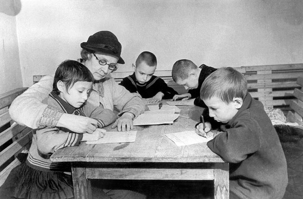 Беда была с тетрадями, их делали из старых газет, потому что не хватало бумаги. Чернила замерзали, дети писали карандашами, но они учились. В школе они играли на учебу. " Выглядело это так: если получил пятёрку, то убил «Ганса, фашистского офицера», если четвёрку – «Фрица, фашистского солдата», если тройку – промазал, ну а если двойку – вообще стрелял по своим. И дети старались.»