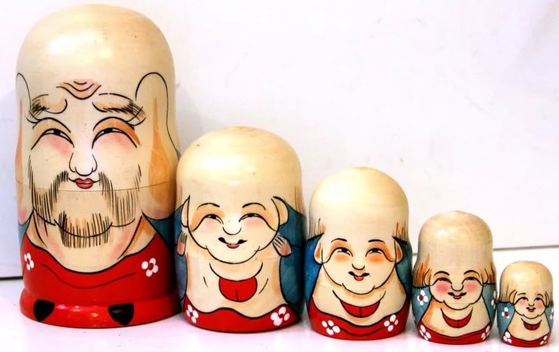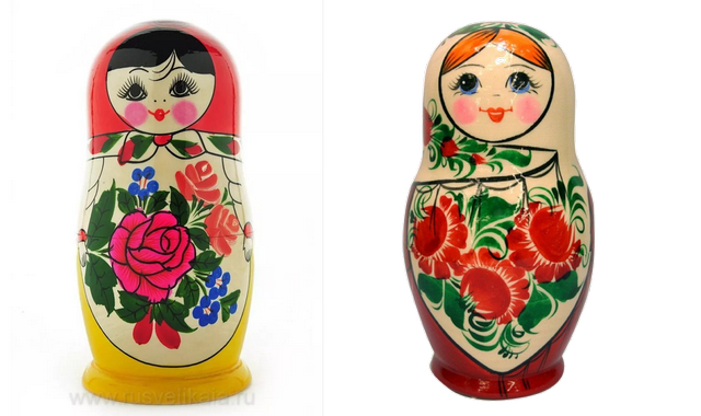 В каждом районе свои традиции росписи матрешки. Семеновские - темноволосые, а вятские - голубоглазые блондинки. Самая большая матрешка, выточенная семеновскими мастерами - высотой в один метр, вмещалось 72 фигурки.