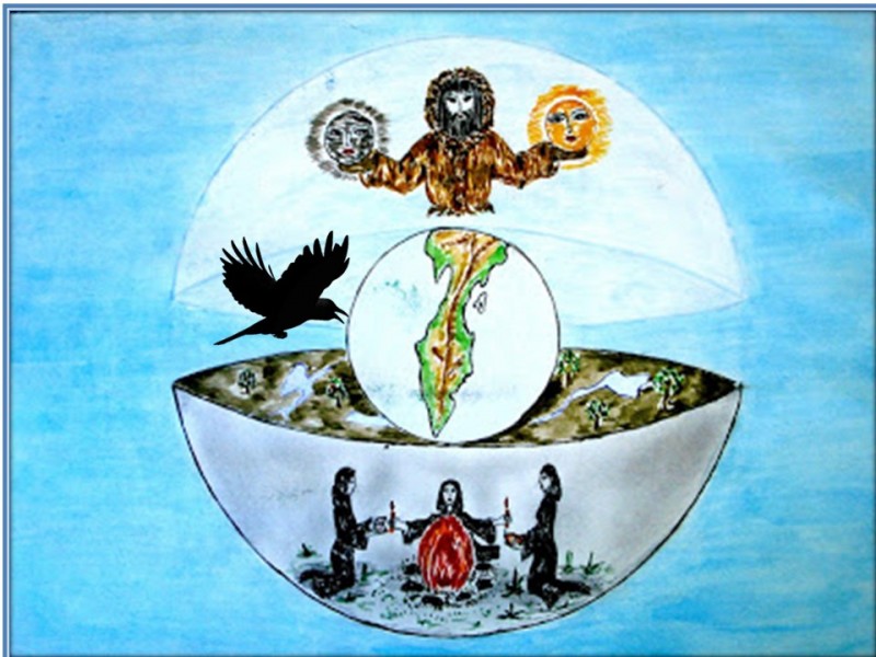 В одном из мифов индейцев алгонкинов ворон является разведчиком, помогающим в творении земли высшему существу.