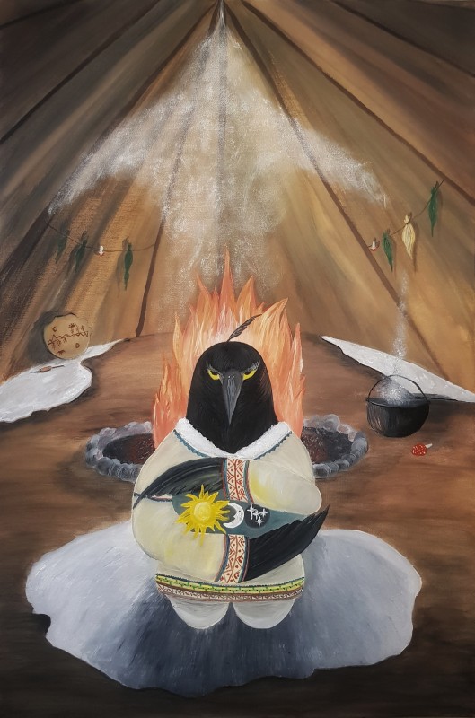 У чукчей ворон – главный герой мифов творения, символ Бога-творца. Он создает горы, животных, первых людей, учит их говорить и есть мясо животных, добывает небесные светила, существовавшие раньше лишь в верхней вселенной. Ворон раскрасил всех птиц, а себя из белого – в черный цвет, да еще пробил небесную твердь, дав всем свет.