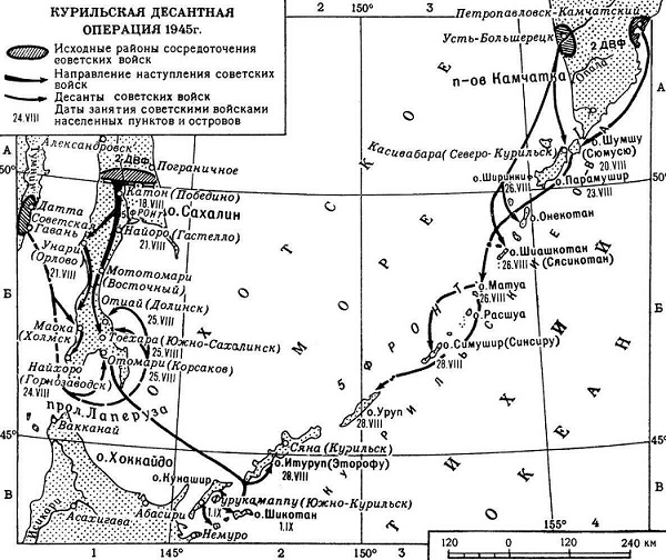 Была начата Курильская десантная операция, в ходе которой советские войска заняли Курильские острова. В этот же день главнокомандующий советскими войсками на Дальнем Востоке маршал Василевский отдал приказ об оккупации японского острова Хоккайдо силами двух стрелковых дивизий. Но из-за задержки продвижения советских войск в Южном Сахалине была отложена до указаний Ставки.