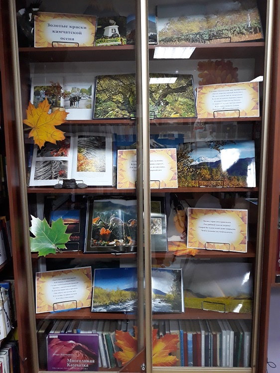 А у работников библиотек осенью есть большое желание познакомить своих читателей с литературным и художественным творчеством наших земляков при помощи литературно-художественных экспозиций, подготовленных на библиотечных площадках. Выставки, включающие фото работы и литературное творчество, создают в библиотеке непередаваемую атмосферу романтики, лёгкой осенней грусти и очарования камчатской природой.