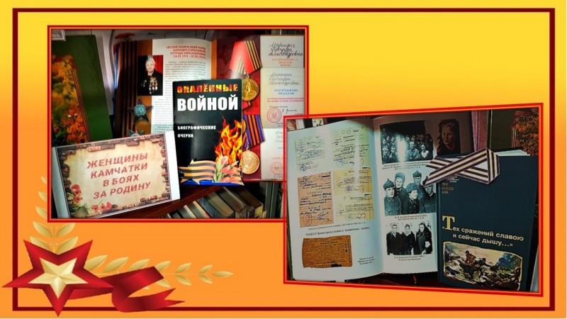 Библиотека № 5 подготовила книжную выставку «Женщина на войне – это уже ПОДВИГ», на которой представлены фотодокументы из журнала «Родина», литература о женщинах Камчатки, воевавших на войне.
