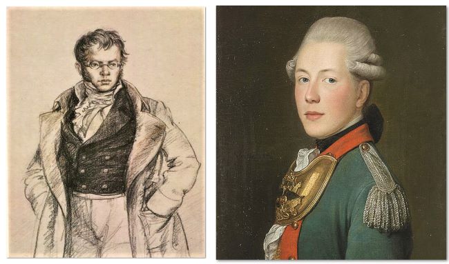 П. Вяземский в молодости. Ж.-Л. Вуаль. "Андрей Иванович Вяземский. 1774 год" – отец поэта