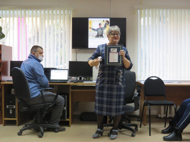 Главный библиотекарь библиотеки № 8 МБУК «ЦГБ» Сидорова Елена Васильевна рассказала о зарождении внутри коллектива идеи проведения патриотической акции «За нами Победа!» и ее претворении в жизнь. Библиотекарями собран фото и документальный материал о ветеранах ВОВ, блокадниках, детях войны и тружениках тыла. Пандемия помешала созданию большого транспаранта с этими материалами для прохождения с ним в «Бессмертном полку» и дальнейшей передачи его в Музей средней школы № 35. Большая часть материалов опубликована на сайте МБУК «ЦГБ» - семь статей.