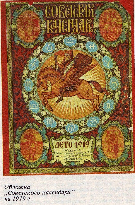 „Советский календарь" на 1919 год, выпущенный в Москве издательством Всероссийского Центрального Исполнительного Комитета, можно без преувеличения назвать энциклопедическим словарем Советов — так широко и разносторонне раскрыта в нем жизнь республики. Под рубрикой „Светочи человечества" редакция знакомит читателя с биографиями К. Маркса, Ф. Энгельса, В. И. Ленина, Ф. Лассаля, А. Бебеля, К. Либкнехта. Календарь обстоятельно рассказал об истории революционного движения на Западе и в России, о съездах партии и Советов, о конституции и рабочем контроле, о просвещении и медицине, о Красной Армии и центральных учреждениях республики.
