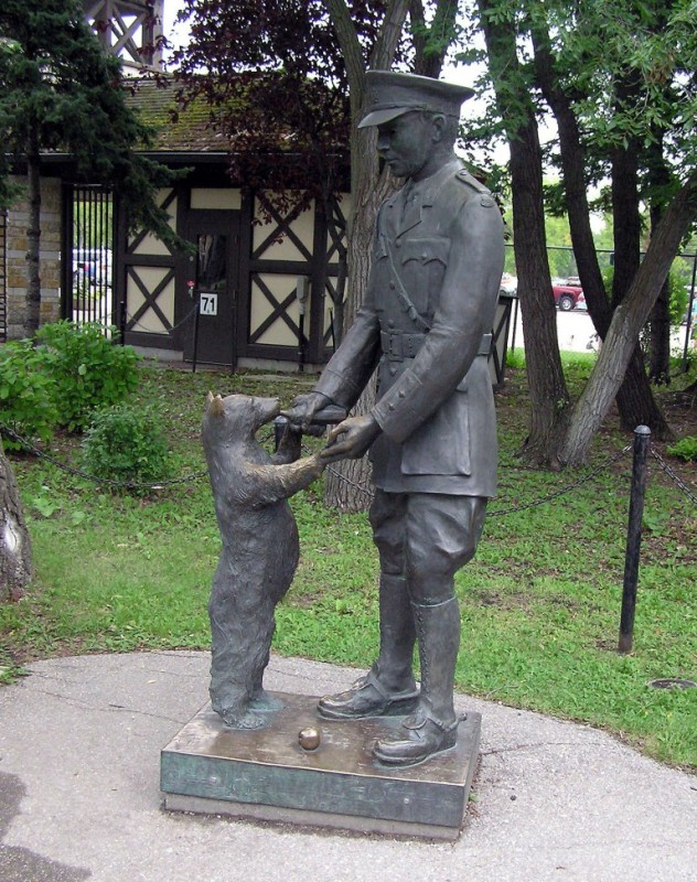 В 1915 году в Лондонский зоопарк из Канады приехала молодая медведица Виннипег. За год до этого её за 20 долларов приобрёл у охотников в Канаде лейтенант канадской армии Гарри Колборн. Названа она была в честь родного города лейтенанта. Медведица стала талисманом армейского ветеринарного корпуса, в котором он служил. Перед отъездом на фронт Колборн оставил Виннипег в дар Лондонскому зоопарку. Виннипег или Винни, как все её называли, сразу стала любимицей детей, и военные не стали возражать против того, чтобы оставить её в зоопарке насовсем. По воспоминаниям служащих зоопарка, Винни была единственной из зверей, кому они полностью доверяли. Она была настолько добродушной, что даже позволяла детям кататься на себе.