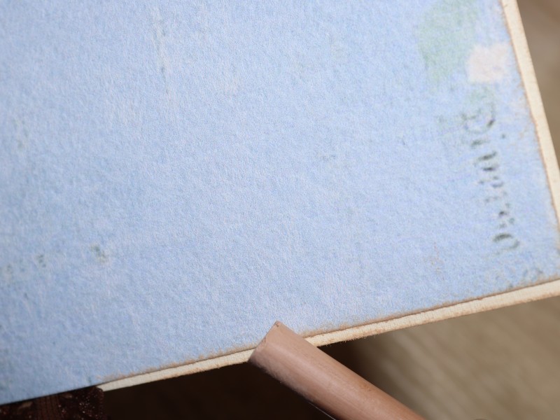 Состариваем также края всей нашей основы. Аккуратно, слегка надавливая на мелок,проходим по всей краям открытки, растушевывая там, где необходимо.