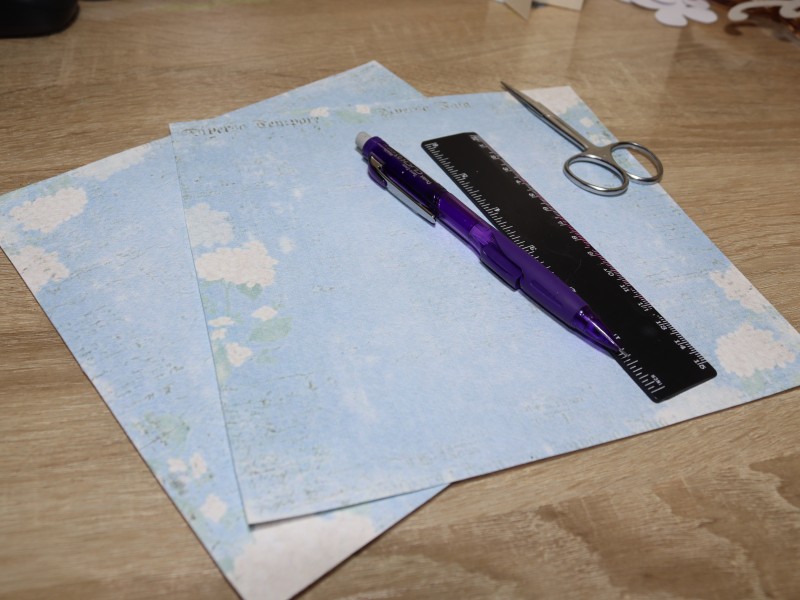 Отмеряем нужные нам размеры на скрапбумаге. И вырезаем.