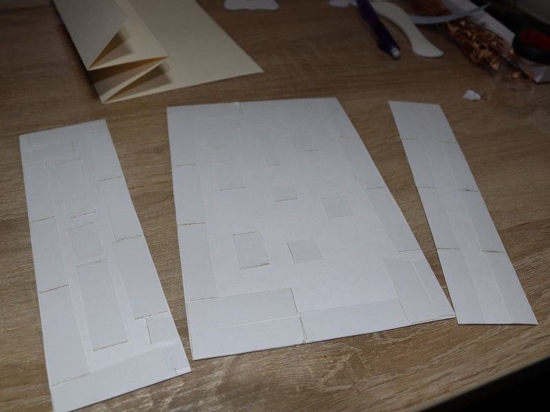 4. Приклеиваем с помощью двухстороннего скотча цветные детали к основе открытки.