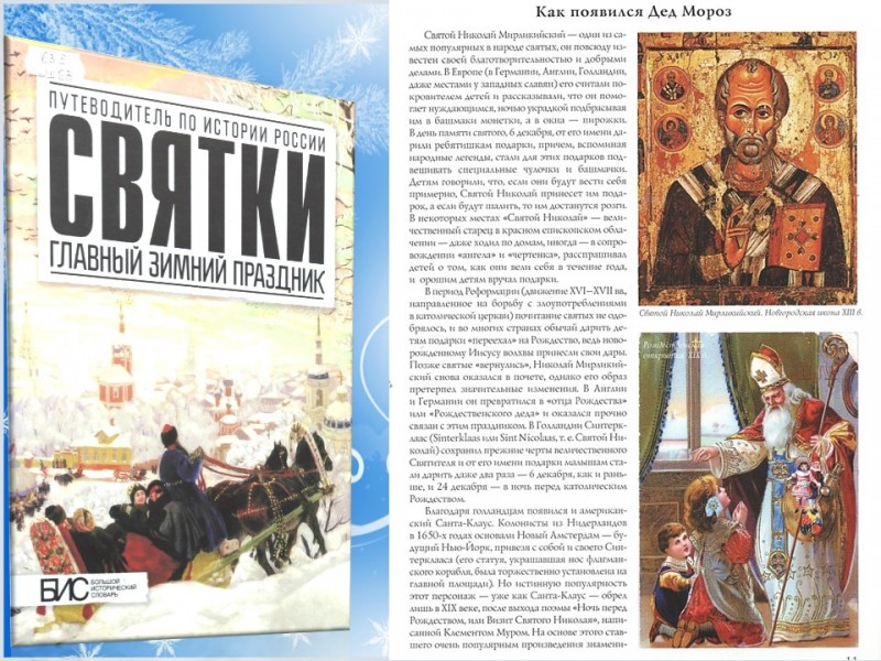 Шапарова, Н. С. Святки : главный зимний праздник : [история возникновения, святочные обряды и традиции] / Н. С. Шапарова. – Москва : АСТ-Пресс школа, [2014]. – 32, [1] с. : цв. ил. – (Путеводитель по истории России ; Большой исторический словарь).