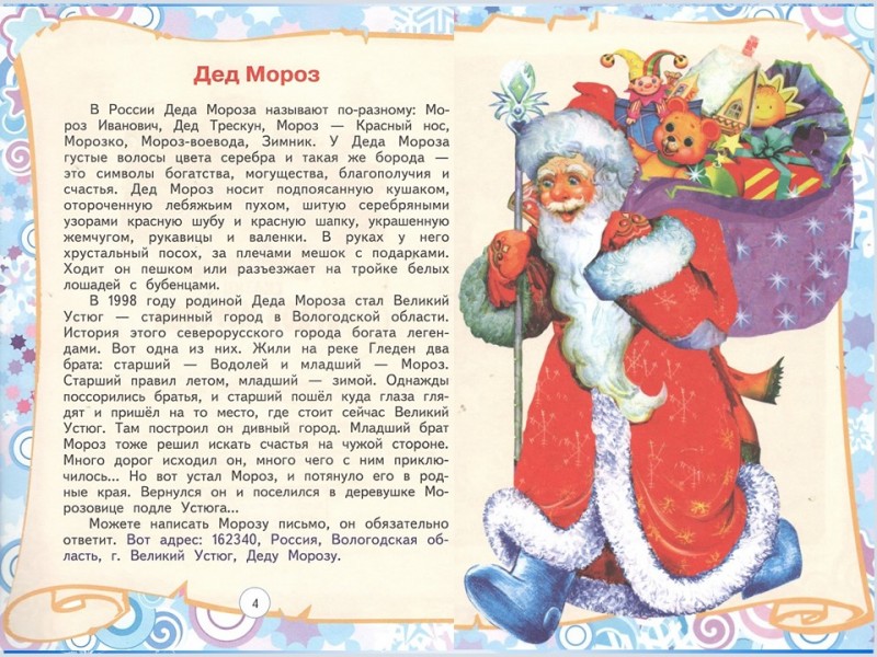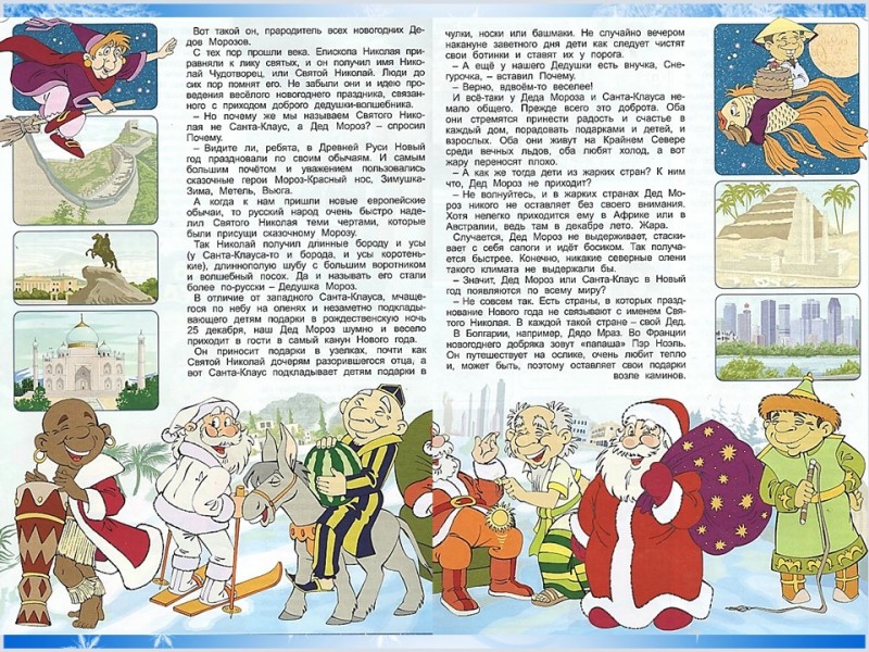На страницах этого познавательного журнала вы прочитаете историю появления сказочного Новогоднего героя – Святого Николая. А также узнаете почему он стал в последствии Дедом Морозом в нашей стране и Санта-Клаусом в Америке. А также узнаете сколько братьев и сестёр нашего дедушки Мороза.