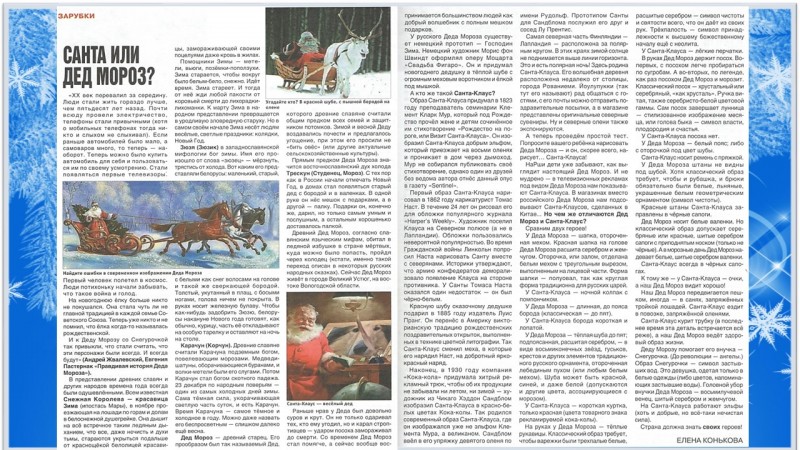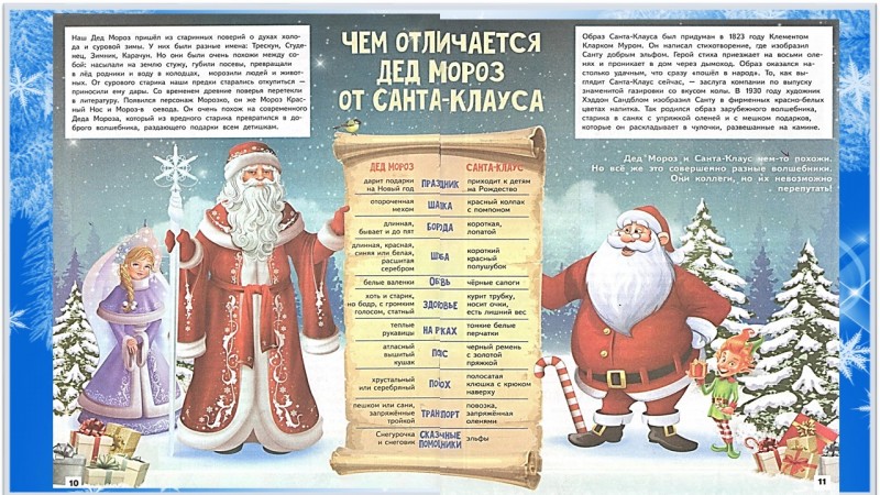 Чем отличается Дед Мороз от Санта-Клауса // Почемучкам обо всём на свете : журнал для тех кто хочет знать больше всех. – 2019. – № 12. – С. 10 – 11.